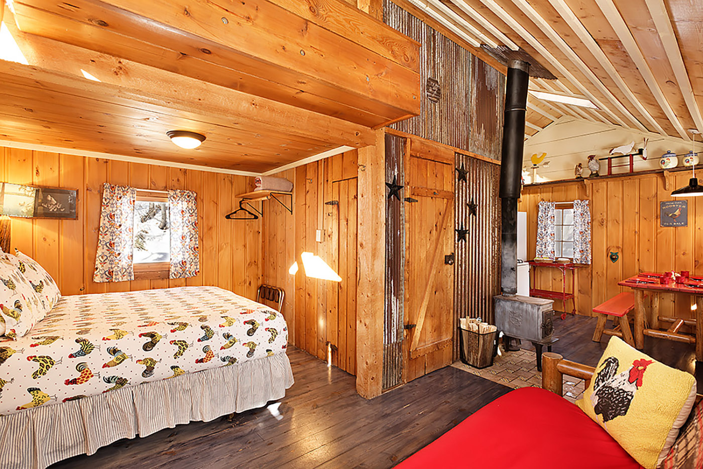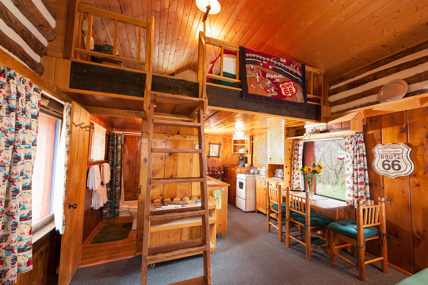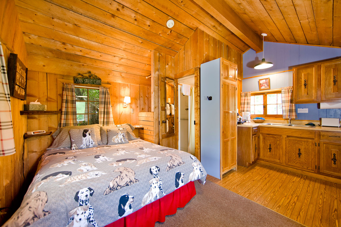 Studio with loft, tub/shower, queen bed, full futon, full mattress in loft, complete kitchen.